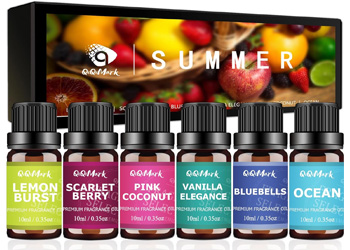 QiQiMARK Fragrance Oils for Diffusers, 6pcs Diffuser Oils Set, 10ml Lemon Burst, Scarlet Berry, Bluebells, Vanilla Elegance, Pink Coconut, Ocean for Waterless Diffuser, Car Air Freshener, Humidifiers